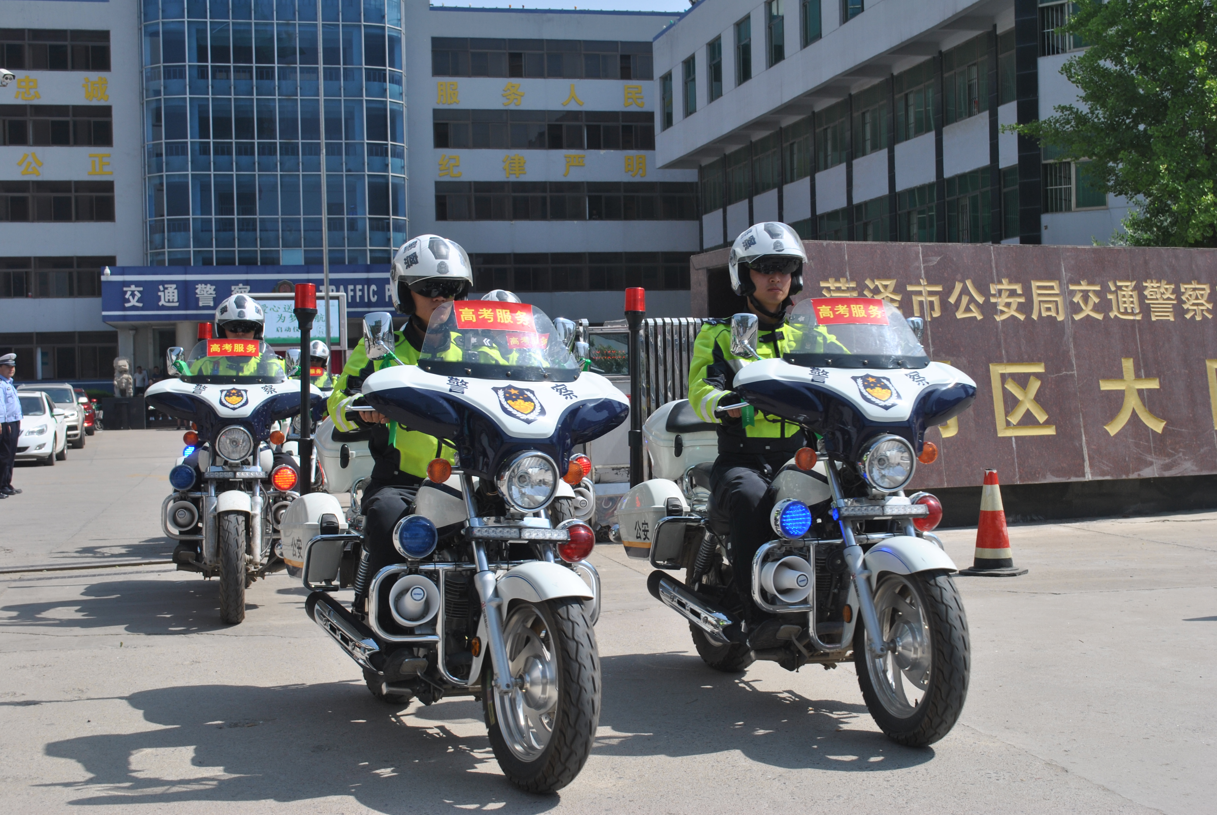 菏泽市公安局交警支队牡丹区大队大队长沈祥峰介绍,为全力保障各个考点有序进行高考,随时为考生提供帮助,牡丹区交警大队300名交警全警上岗执勤,牡丹区5处高考考场外均会配备3名铁骑警员和一辆高考服务警车,在维持考点门口秩序的同时,为考生紧急需求提供帮助。