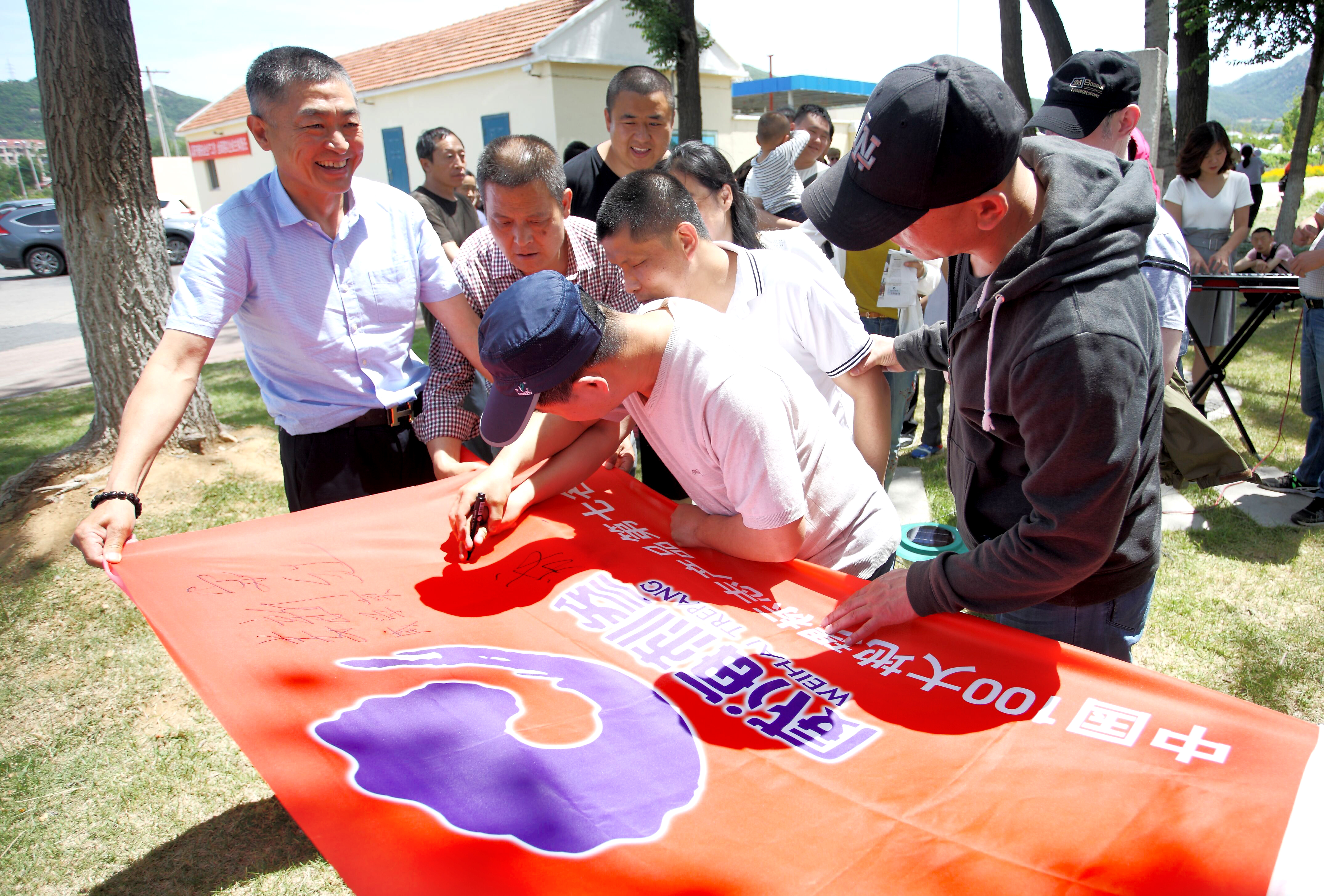 “威海刺参会客厅目前已经名声远扬,我们作为盲人也想为威海刺参走向世界尽一份力,可否让我们都能够在威海刺参大旗上签名留念呢?”姜新的一番话得到了现场所有盲人朋友的赞同。随即,双举海参员工拿出威海刺参旗帜,盲人朋友一个个认真而庄重地在旗上签上自己的名字。