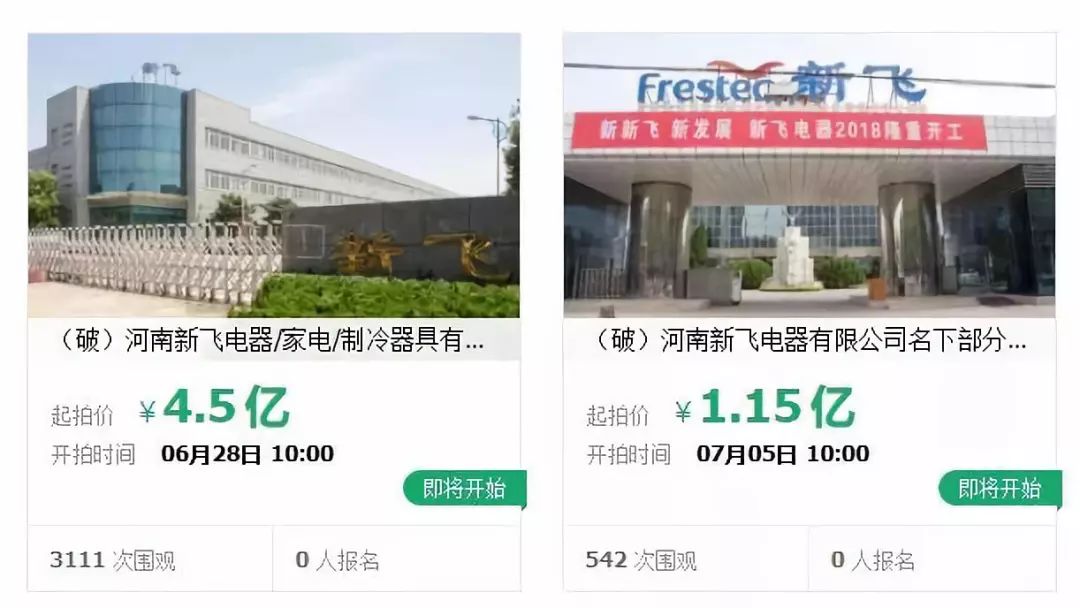从6月28日到29日,新飞电器、家电、制冷器具三公司将举行公开司法拍卖活动,起拍价为4.5亿元,保证金一亿。