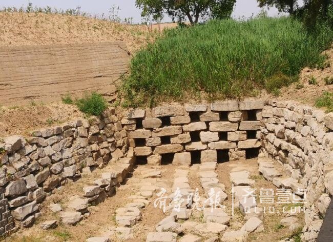 齐国故城大城西墙排水道口位于齐国故城大城西墙北端,结构严谨,构筑坚固,巧夺天工,把天然河流、人工护城壕沟与城内排水系统有机结合,既可泄水,又可御敌,显示了齐国人的非凡智慧和高超的建筑技术水平,被誉为同期城郭排水设施建筑史上国内仅有、世界罕见的杰作。