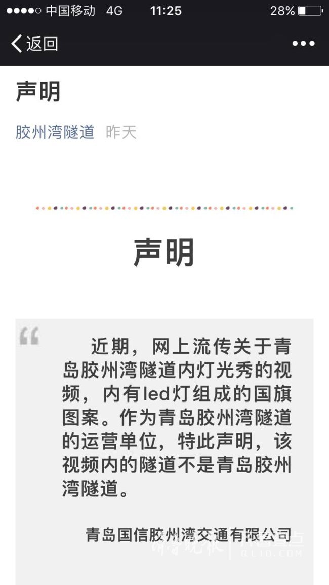 青岛胶州湾隧道也有灯光秀?官方辟谣:假的!
