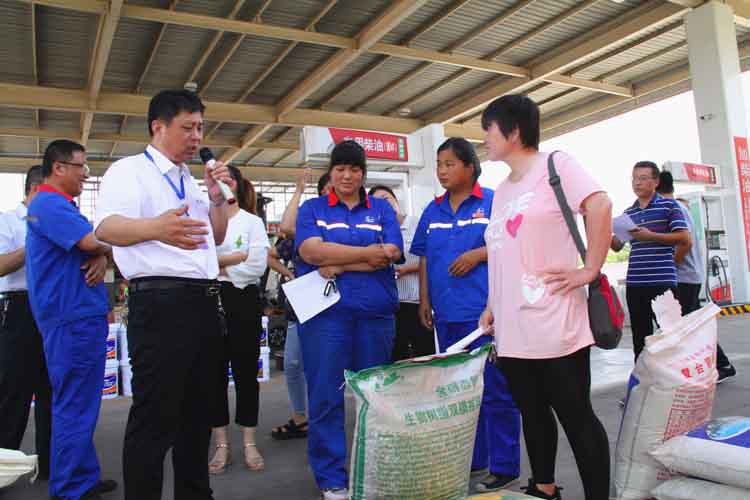 活动现场展示了各种亿邦品牌系列化肥,加油站农户络绎不绝。厂家农业技术人员现场为农户解答农业生产中的疑问及难题,指导农户科学种植和“三夏”农业管理,并通过现场溶解试验鉴别产品优劣,凸显亿邦化肥特色,引导农户根据种植的农作物种类进行选购。