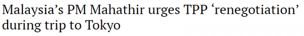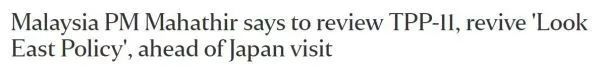 不仅如此,马哈蒂尔还对跨太平洋伙伴关系协定(TPP)提出质疑,令对TPP心心念念的日本有些措手不及。