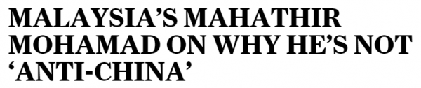 《南华早报》更是在前不久的一篇报道中援引马哈蒂尔的话说:“‘反华’只是对手对我使用的政治标签,事实上,我一直维护中国。”