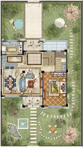 214㎡边户赠送约140㎡私家花园,绿意繁花铺满路