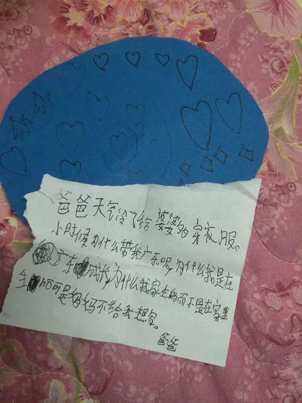 陈志珍藏了女儿给他写过的小纸条:“爸爸天气冷了给婆婆多穿衣服。小时候为什么带我广东呢,为什么我是在广东成长,为什么我家生的而不是家里生ho(注:生活)可是妈妈不给我想家。”