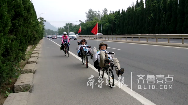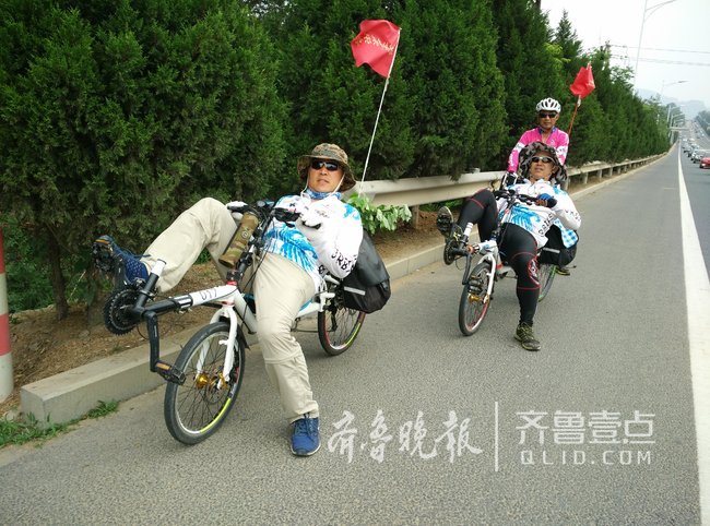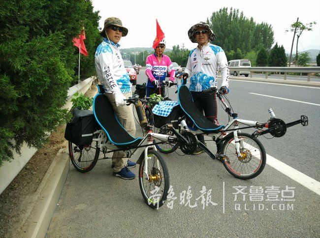 6月16日下午,齐鲁晚报•齐鲁壹点记者在济南南部山区的道路上见到三位骑友,其中两位躺着骑自行车在马路上疾行,远远望去一开始还以为是残疾人在骑车搞宣传,驶近看时才发现是躺着骑自行车的健身人士。