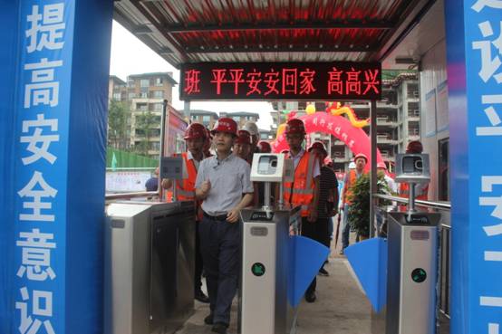 近日,记者在重庆合川某项目“智慧工地”现场入口处看到,这个入口处安装有类似于地铁出入口一样的闸门,所不同的是,闸门上方还安装了一个小屏幕。当工人走近时,脸部出现在屏幕上,“哔”地一声,不到一秒闸门就自动打开了。