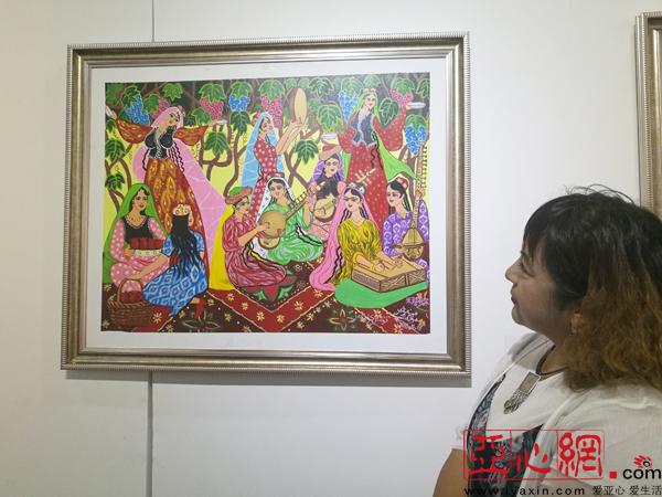 早上一开展,就迎来了许多乌鲁木齐的美术爱好者。“无论是从造型、色彩、形式、构图等方面看都特别棒,虽然我是教美术的老师,当我看到这些我真的不知道用什么样的词语形容,太震撼了,首先想到的是艳而不俗。”乌鲁木齐第100中学的美术老师李来娟边忙着拍照边赞美,“果然艺术是来源于生活的,这些农民画太震撼了,艳而不俗,带学生们过来看看。”