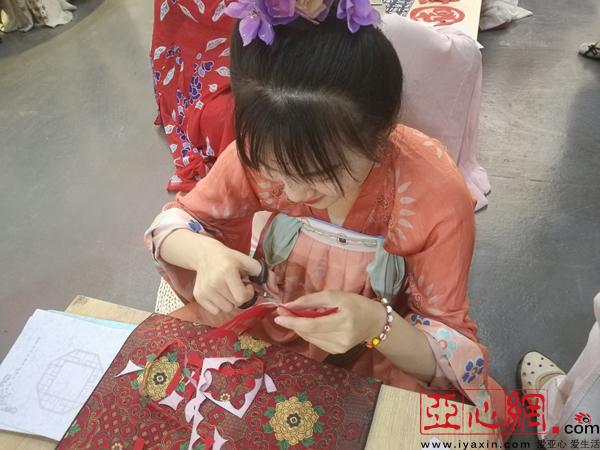 身着古装剪纸的乌鲁木齐职业大学工艺美术品设计系的学生。