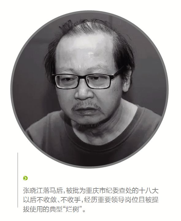 张晓江落马后,被批为重庆市纪委查处的十八大以后不收敛、不收手,经历重要领导岗位且被提拔使用的典型“烂树”。有媒体曾披露一个细节,张晓江接受“走读式”谈话期间,市纪委执纪人员让张晓江留下手机。“人机分离”后,这部手机经常收到称呼其为“张教授”的定向招嫖信息。执纪人员进一步发现,张晓江的手机里存有大量淫秽视频。