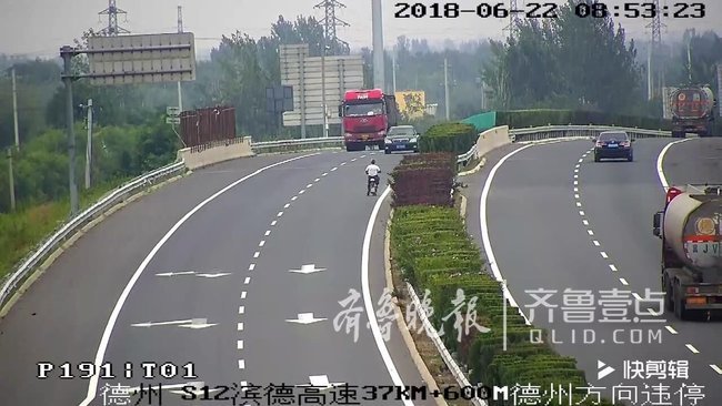 监控视频显示,老人先是在37KM+600M的监控点向德州方向骑行了500米,随后折返驶入匝道,向滨州方向骑行,总共骑行大约2000米,所幸期间没有意外发生。