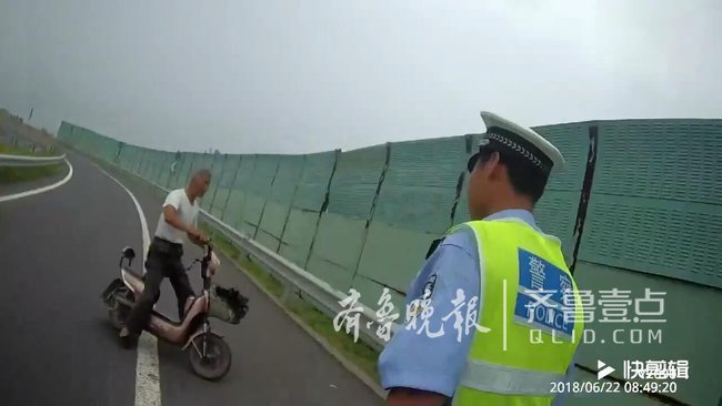 原标题:真危险!老人骑电动车高速上逆行,自称抄近道迷了路