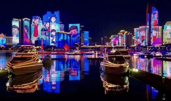 7月、8月来青岛,每天都能在五四广场看灯光秀!