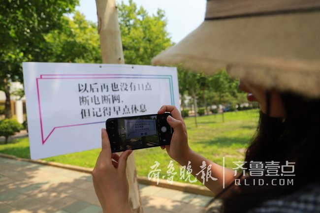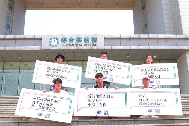 带着赶制好的“情话”,刘晋倩带领同学顶着烈日连续工作将近5个小时,在通往毕业典礼集合点的三条校内主干道两旁悬挂好路牌。“毕业典礼当天,不少师哥师姐合影留念,能感受出他们对母校深深地情感,我们的付出就是有意义的。”刘晋倩说道,不少即将离校的毕业生专程前来合影留念,有的在平台留言致谢,这让团队倍感欣慰。