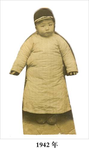 我是姚树信,生于1940年。那个年代 ,老百姓家里没有缝纫机,我的衣服都是母亲亲手裁剪缝制。1942年我三岁了,母亲按照成人所穿的长袍式样为我缝制了小棉袍,并精心为我用六块布缝合在一起做了帽子。母亲当时还独出心裁,按照学生帽的式样加了帽檐。我穿戴上新装显得更加可爱,于是领我到当时的兖州中央照相馆拍了这张照片,保存至今,已经75年。