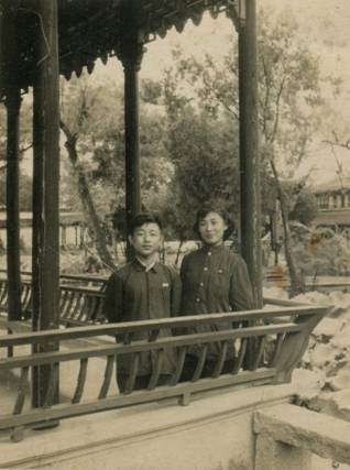 1976年社会经济逐步恢复,我的特长美术设计有了用武之地。1976年我到上海看望姐姐,我外甥也刚上山下乡回沪安排了工作,我俩重游上海,留下了这两张照片,对未来充满向往。那时的衣服是清一色的蓝、灰、黑色,穿皮鞋的还很少,多数穿千层底布鞋。