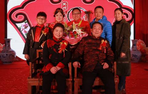 由于我从事的是中国传统文化事业,特别喜爱中华传统服饰,2016年春节,与家人合影,特意从北京订做了刺绣唐装。