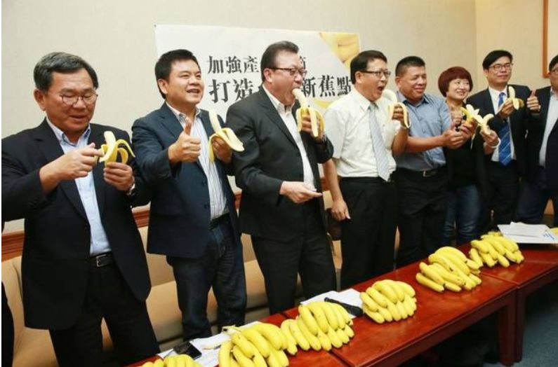 台湾岛内香蕉主产地的几位民进党“立委”也在“立法院”举办香蕉记者会,人手一根香蕉,表情夸张地咬下香甜的香蕉,希望民众多多消费香蕉,以解蕉农之苦。