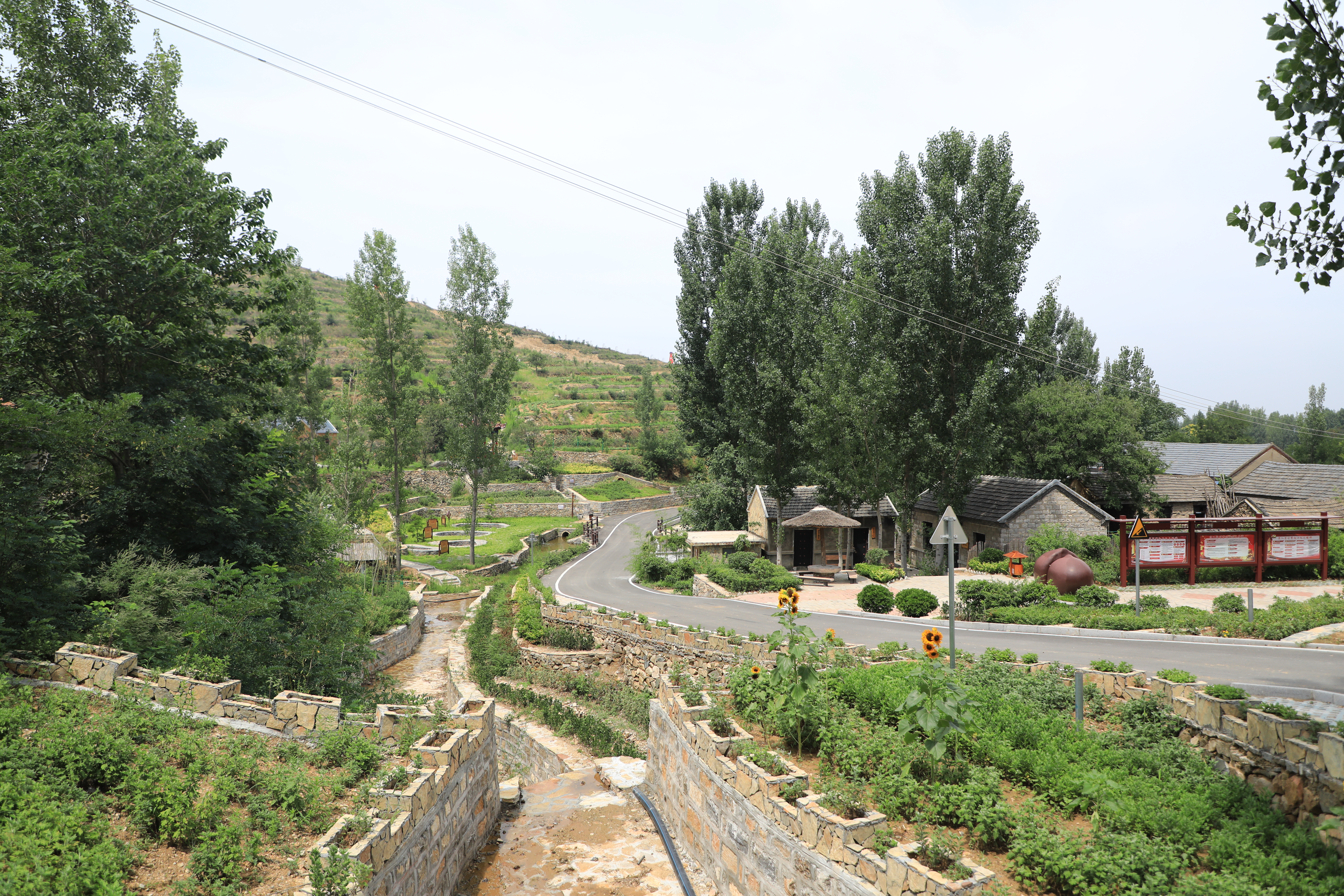 带领村民致富,关键在行动、在实干。张新春和牛敬坤抓住邹东山区连片开发的机会,积极争取了近300万美丽乡村专项资金,全面建设了集排水、蓄水于一体的水系景观工程、休闲长廊、文化广场,以及与之相配套的停车场等公共设施。