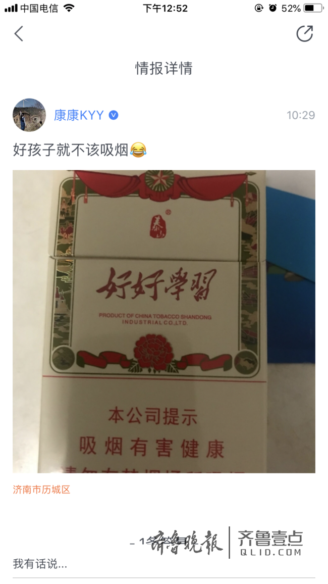 情报员“康康KYY”10点29分发布消息:好孩子就不该吸烟。