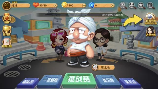4.注册完毕,自动弹回主界面,再次点击“首届全国快乐学法大赛”,点击“开始”进入比赛,点击排行榜查看排名。