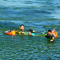 “刘林洪、丁赛赶紧去救人!”时间就是生命,获悉情况后,该连连长崔根峰立刻命令两名游泳骨干携带救生器材下海救人,同时组织排长赫增辉在岸滩准备接应。