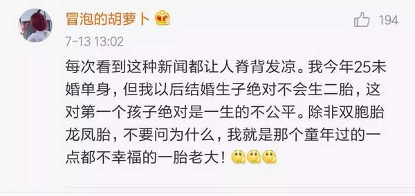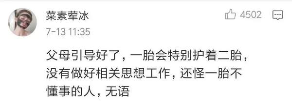 此前,有媒体报道,青岛一所小学四年级班主任称,班里有七八个孩子搞了个“反弟弟妹妹联盟”,集体抵制父母生二孩。还有一位4岁男孩给弟弟起名“多多”——多余的多。