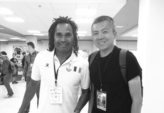 看过1998世界杯的朋友,应该都还记得当时法国队的球员卡伦布。直到现在,他还是原来那个样子,标志性的爆炸头,嘴周围一圈胡茬,长相相当凶悍。但私下里,卡伦布性格风趣幽默,很好接触。这一次在莫斯科相见,面对记者的采访请求,他欣然同意,谈到即将进行的决赛,他说当然是希望看到同胞法国队夺冠,“体能方面的优势,将帮助德尚的球队成就冠军伟业。”
