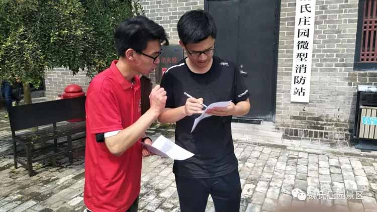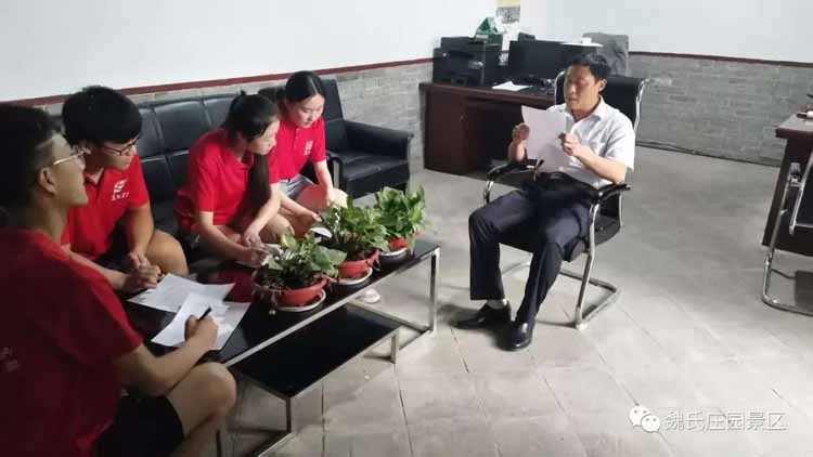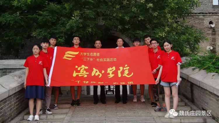 7月15日上午,滨州学院建筑工程学院“问道匠人典范,测绘楼宇奇缘”社会实践服务活动志愿者来到魏氏庄园景区,魏氏庄园副总经理朱希伟向各位志愿者介绍魏氏庄园的建筑特点和文物保护的情况,并对近年来先进的社会实践经验进行了交流。