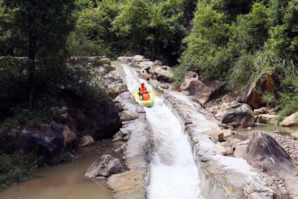 据了解,牛牵峡漂流景区位于重庆丰都南天湖镇义和村,距重庆主城150公里,距丰都城区20公里,牛牵峡漂流是丰都县委、县政府推动全域旅游发展招商引资的重点“旅游+体育”户外运动旅游项目,漂流的原始生态、超长落差、狂野刺激是牛牵峡漂流景区的最大特色,目前尚居重庆周边漂流之首,其得天独厚的旅游资源和便捷的道路交通,吸引了大批游客到牛牵峡观光旅游、漂流游玩、户外体验。