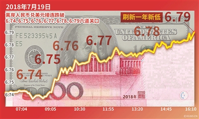 本报讯(记者 张钦)昨天,人民币对美元中间价下调152点报6.7066,这是中间价连续第六日调降,也是自去年8月以来首次跌破6.70关口。昨天晚间,在岸人民币兑美元跌破6.78关口,全日内跌幅超过300点,创下一年来汇率新低。与此同时,离岸人民币失守6.80关口,也刷新了一年来的新低。