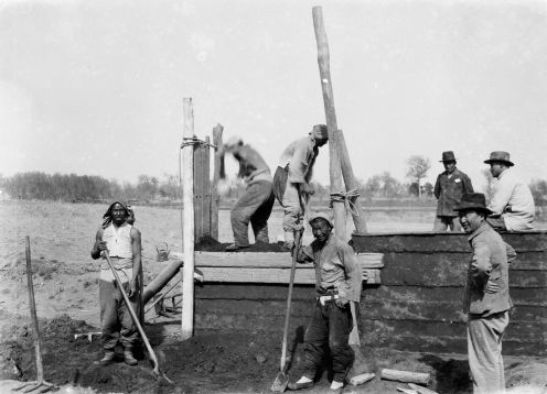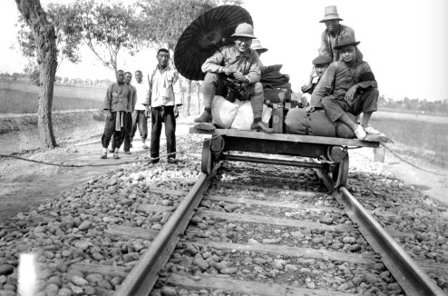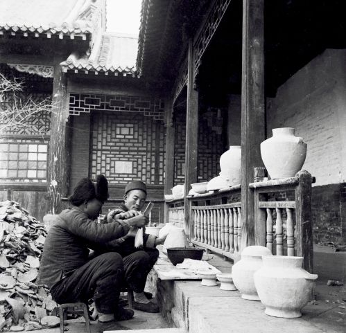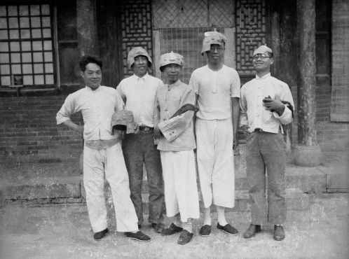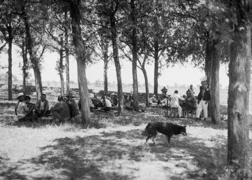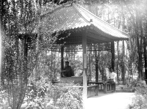 袁家花园养寿堂西南之亭,亭中坐案上者李济 (《殷墟发掘照片选辑1928-1937》编辑注记:袁家花园即袁林,亦称袁公林,为袁世凯陵墓,1918年修建完成,位今安阳洹河北岸之太平庄,史语所安阳发掘团民国十八年春入住使用,二十二年春发掘暂停,养寿堂为军队所占,发掘团因于二十二年秋迁往冠带巷)