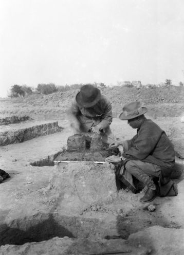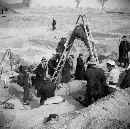 9年的殷墟考古成果卓著,晚商宫殿、作坊、陵墓、甲骨、青铜器、玉器、陶器……共同坐实了文献所载的晚商确实存在。不仅如此,殷墟还成为了“考古”这一西方舶来的学科,在中国正式成熟的摇篮。中央研究院历史语言研究所(中研院史语所)在所长傅斯年的领导下,为殷墟考古倾尽全力,前后凡15季,直至1937年战争爆发;董作宾、李济、梁思永、夏鼐等名家,都先后于殷墟或主持或参与发掘,留下历史的背影。