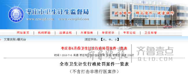 原标题:卫计监督局通报,枣庄市中区人民医院等被警告罚款