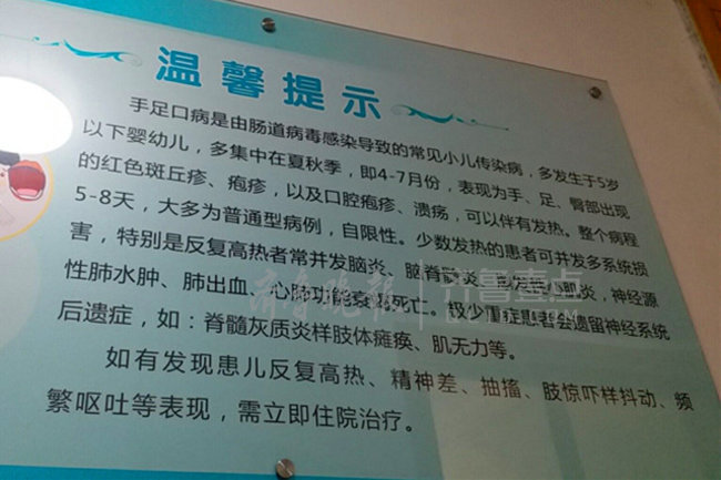 成年人接触患儿 也会被传染齐鲁晚报·齐鲁壹点记者了解到,手足口病是由多种肠道病毒引起的常见传染病,以婴幼儿发病为主。大多数患者症状轻微,以发热和手、足、口腔等部位的皮疹或疱疹为主要特征。少数患者可并发无菌性脑膜炎、脑炎、急性弛缓性麻痹、呼吸道感染和心肌炎等,个别重症患儿病情进展快,易发生死亡。