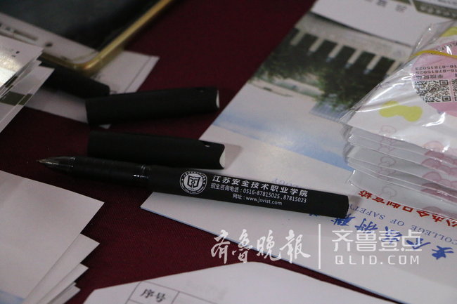 在江苏安全技术职业学院的展位上,前来招生的吕老师摆出了镜子、笔等小礼品。“只要对我们学校有意向,现场登记信息就可以领取一份小礼品。”该校的吕老师说,作为省外的学校过来抢生源,小礼品已经是每年招生的必备了。距离他不远的邢台技术职业学院更是拿出了手机支架来抢夺生源。