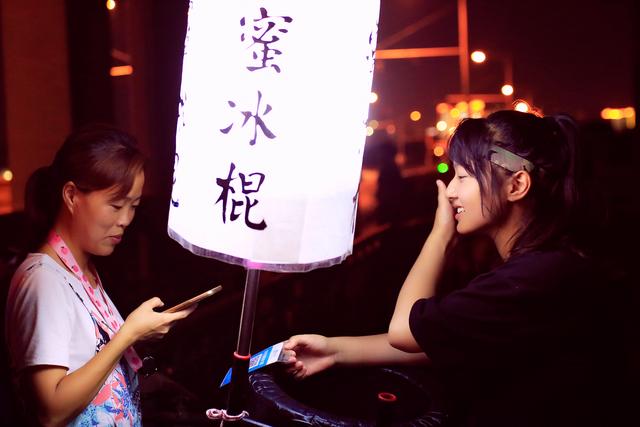 一名男生正在品尝王洪彤做的蜂蜜冰棍。王洪彤说,顾客70%都是网上支付,每天收钱码进账就有100多,现金比较少,只有二三十。“生意有好有坏,好的时候可以全卖完,差的时候会剩一些。最近有不少顾客看到报道过来,有时候忙不过来,就让他们支付宝扫码付钱。”