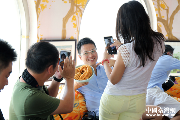 台湾美食生活旅游类外景摄影达人温士凯和同伴互动拍摄新疆美食。(中国台湾网 王怡然 摄)