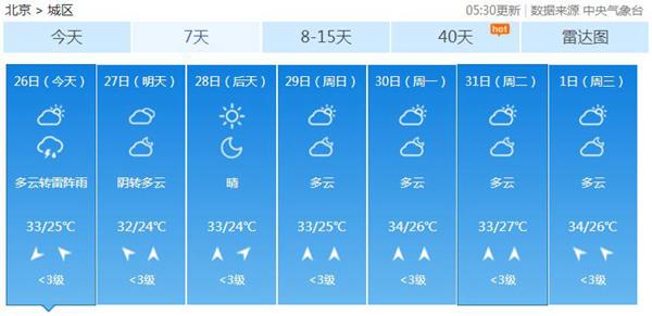 北京回归“烧烤 蒸煮模式” 今天白天需防晒夜间需防雨