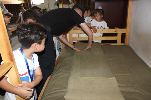 活动中,民警带领学校师生、家长参观了警用装备、枪械器具、警用特勤车辆及特警宿舍,分局特警现场展示枪支的分解结合、如何正确穿戴防爆服头盔及如何折叠被子,孩子及家长们认真观摩警用摩托车驾驶及特警队列展示,现场响起阵阵掌声。