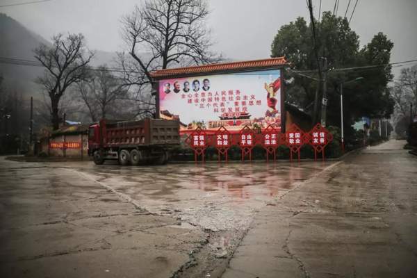 2018年1月,冷清的龙角山村街道,很多店铺已经关门,通往大冶城区的班车还在等候乘客。