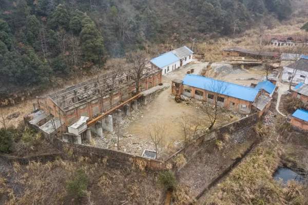 2018年1月,在距离龙角山村约5分钟车程的大山里,依然可以看到原新冶铜矿已经废弃的维修车间。车间已经没了屋顶,但院子仍在被接续开采的私人矿企使用。