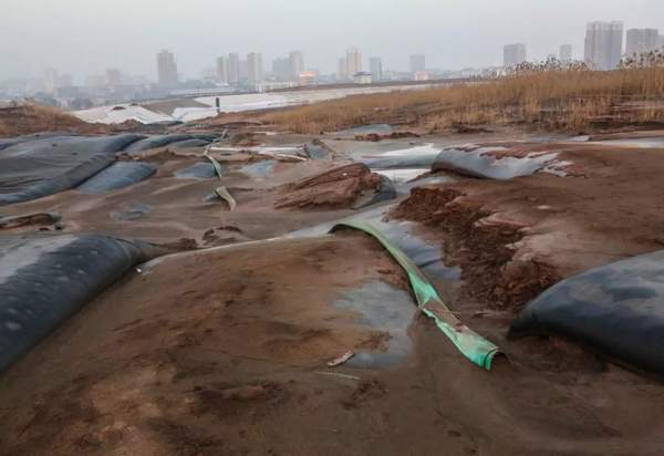 2018年1月,铜绿山矿尾矿库。据铜绿山矿工作人员介绍,溃坝发生后,尾矿库已停止使用。新产生的尾矿砂也被用于回填早年挖出的露天采坑。而这片库面达0.6平方公里的尾矿库,也将被改造为湿地公园。