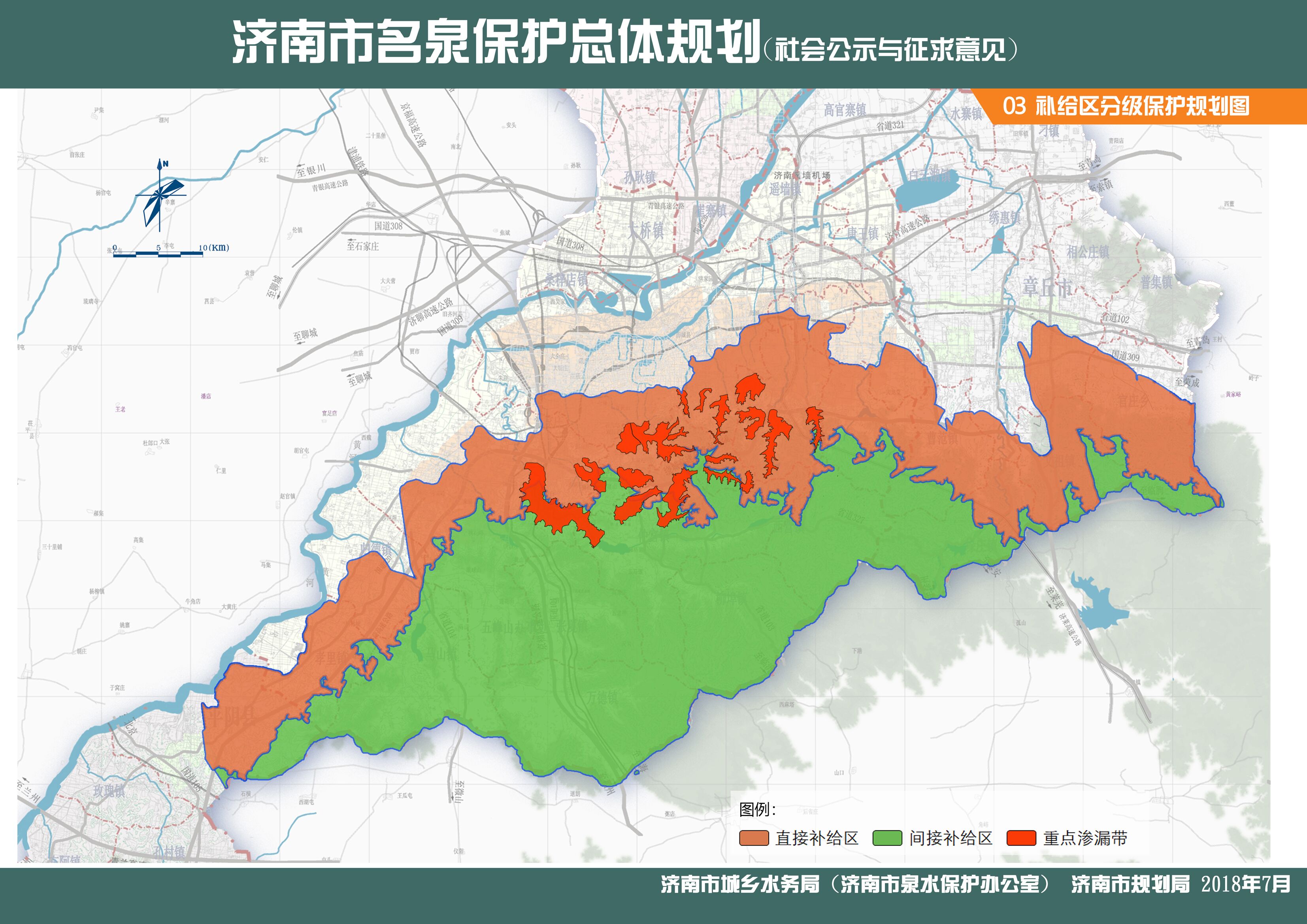 同时,规划以泉水保护与城市建设共融为目标,按照《济南市名泉保护条例》要求,针对与城市发展密切相关的趵突泉泉域和白泉泉域,结合山体、河流水系、直接补给区和重点渗漏带保泉生态控制线的划定,明确各类保护范围,明确禁止建设区和限制建设区的功能区划,提出管控措施。