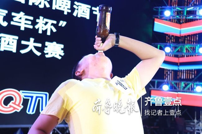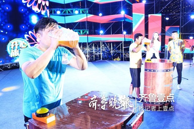 7月26日晚8点,青岛国际啤酒节崂山会场第二场酒王争霸赛举行,现场十位男性选手与五位女性选手同台争夺男女“酒王”称号。