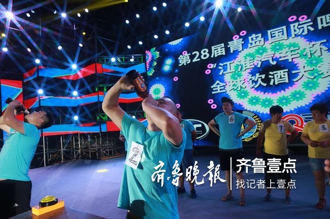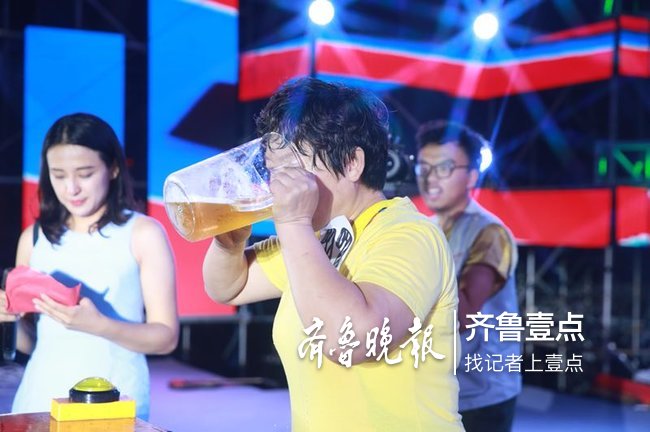 原标题:14名达人现场挑战酒王,黑龙江妈妈上台怀孕女儿助阵 7月28日,青岛国际啤酒节男女双酒王饮酒