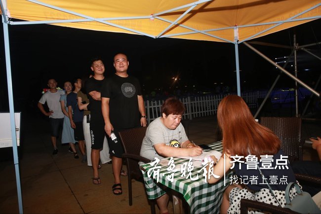 7月28日,青岛国际啤酒节男女双酒王饮酒大赛进入第四场。正逢周六,台下人流众多。报名处也依旧火爆,当晚有二十余人到现场报名处进行咨询,报名截止后共有10名男士4名女士走上舞台向酒王发起挑战。
