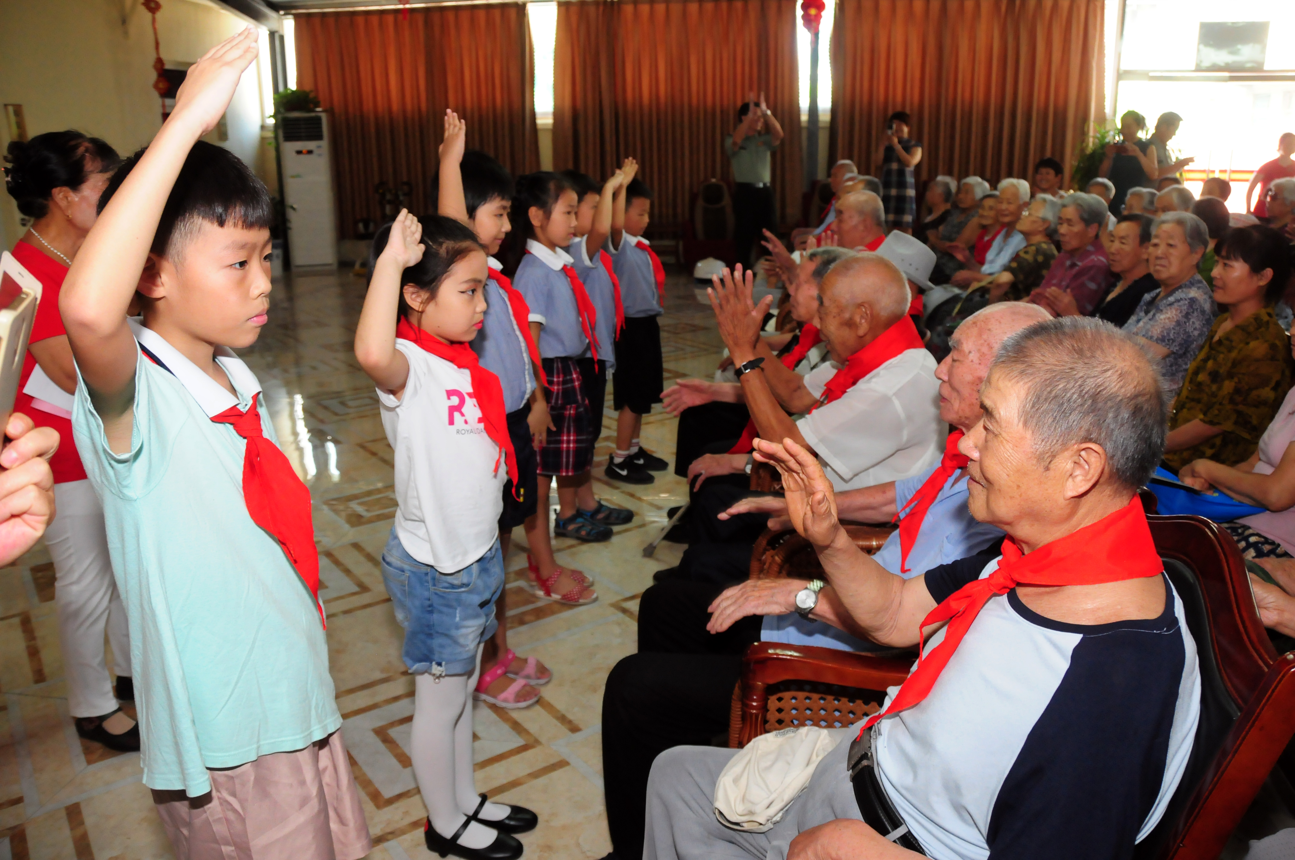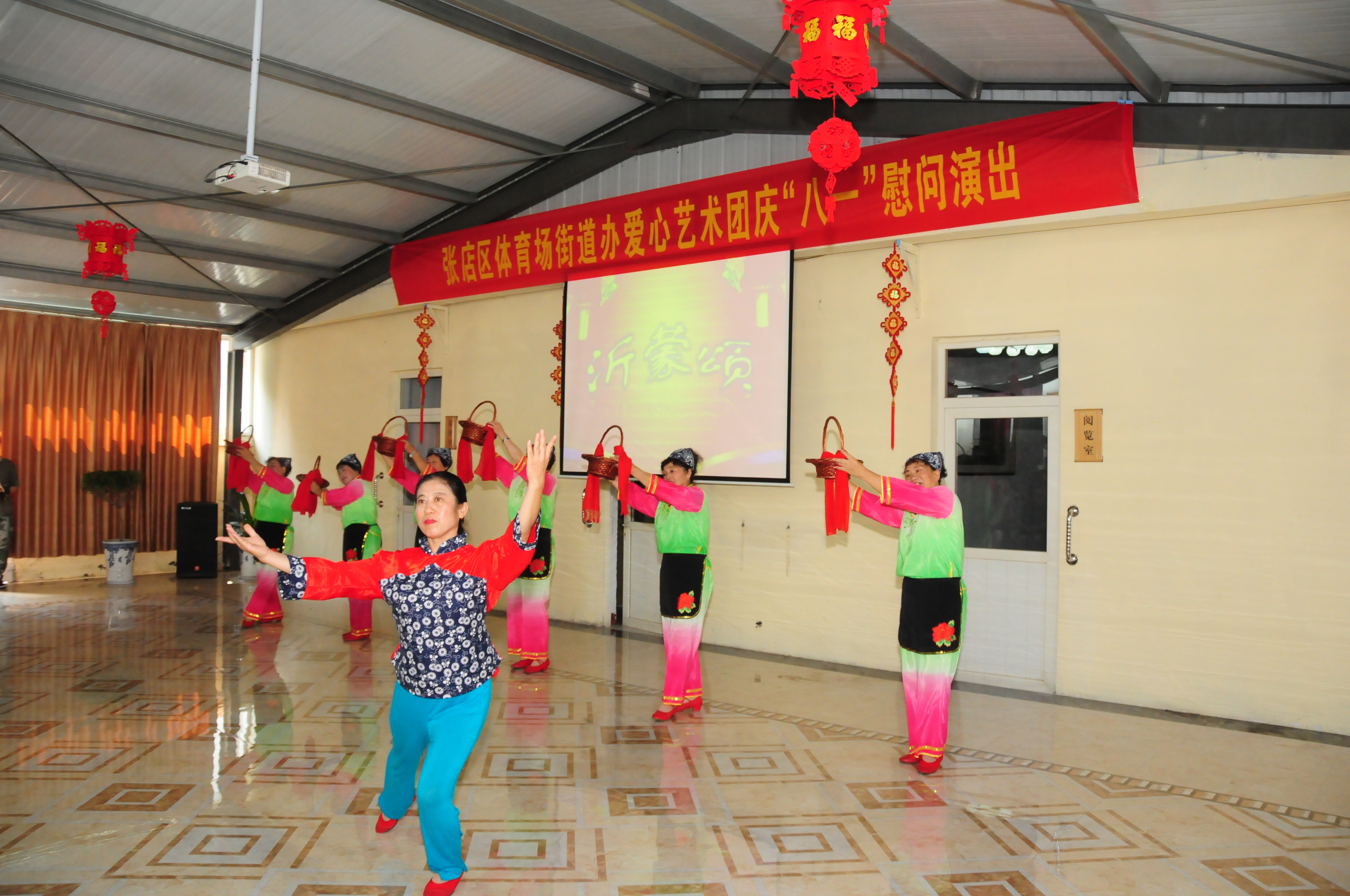 “八一”建军节到来之际,张店区体育场街道爱心艺术团的老少志愿者来到淄博市干休所,为这里的老首长和部队官兵带来一场精彩的慰问演出,为他们送上一份节日的祝福。7月31日一大早,演员们就开始化妆、走台,做演出前的各项准备工作。9点钟,演出在欢聚一堂的音乐中拉开帷幕,整场演出包括舞蹈、快板、京剧、歌伴舞、大提琴独奏等节目形式,精彩纷呈,赢得了观众的阵阵掌声。爱心艺术团和干休所领导及官兵子女共同表演节目,一起度过了愉快的一天。来自张店区建桥小学一年级四班的小小志愿者和他们的家长一起表演了军歌联唱、才艺秀和双节棍等节目,还与官兵子女一起为老首长们献上红领巾和少先队礼。老首长们感受到孩子们的童真稚气和朝气蓬勃,他们拉着孩子的手久久不愿放开,看看现在孩子们的幸福生活,想想当年艰苦的战争年代,一切的付出都是值得的。孩子们近距离与老首长接触和交流,各个都心情激动,纷纷表示有机会还要来看望老爷爷们。