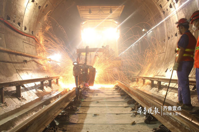 8月2日下午15:56分,济南轨道交通R1号线举行全线轨通仪式,据了解,7月31日,随着R1线中间风井至大杨站区间右线最后一组钢轨焊接完成,济南首条地铁R1线顺利实现全线轨通。
